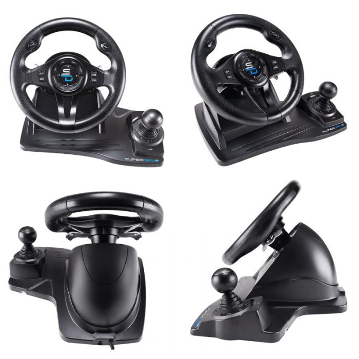 SUPERDRIVE е със замислен и изискан дизайн (25 см диаметър на волана), има скоростен лост, снабден е с две пера за смяна на скоростите, педали за газ и спирачка.