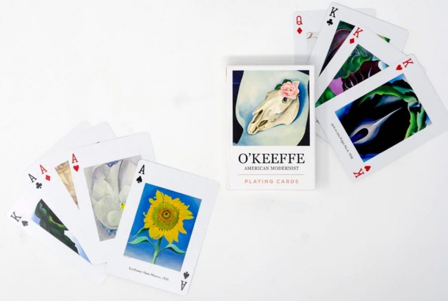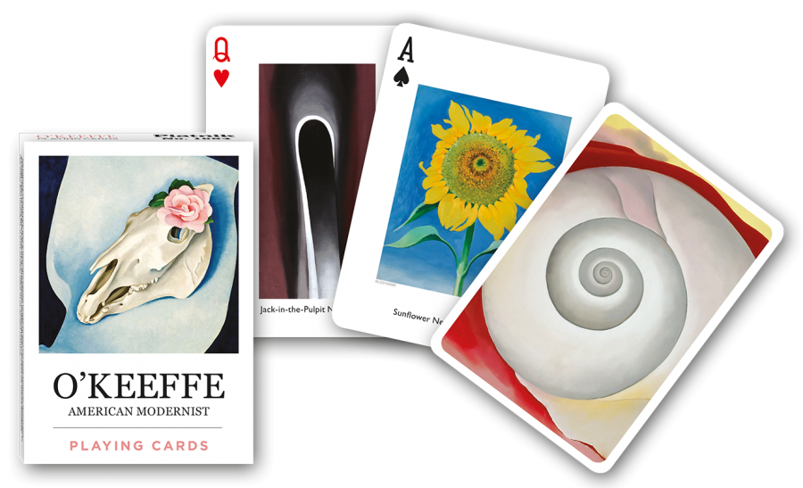 # Тези карти за игра включват важни произведения на видната художничка от 20-ти век Джорджия О'Кийф. Джорджия О'Кийф е била визионерска художничка, изобразяваща природата и пейзажите на Ню Мексико, небостъргачи на Ню Йорк и обширни, прецизни цветни етюди. Обогатявайки почитта на Piatnik към тази велика американска модернистична художничка, този комплект карти с единично тесте включва и фотографски портрети от известния фотограф Алфред Щиглиц, нейния любовник и съпруг.